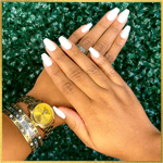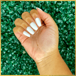 Our "Du Sucre" is an all white short/medium coffin shaped nail. The original nails come in Matte, however you can transform the nail to have a gloss finish with a clear top coat.