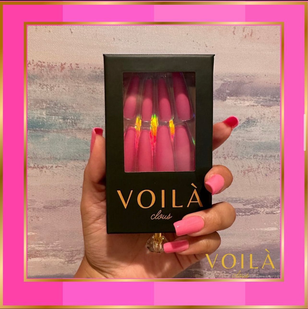Our "Tres Rose" is a long coffin shaped nail with a very deep pink color.